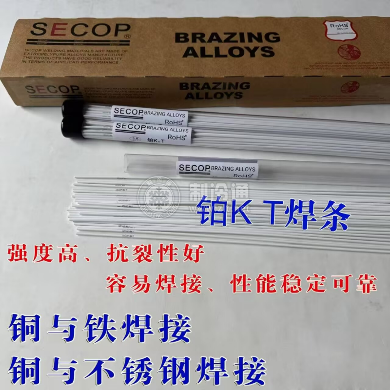 SECOP铂K-T焊条自钎材料适用于焊接铜和铁合金;铜和不锈钢焊接。
