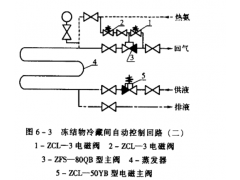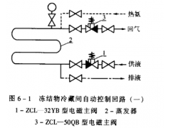- 冻结物冷藏间的自动控制:回气采用气用常开型电磁主阀控制