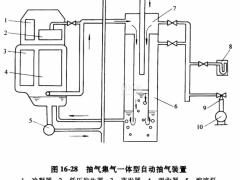 图16-27是一种抽气集气分离型自动抽气装置的示意图。这种型式的自动抽气装代中,通常设有大容最的集气室2,用来储存抽取到的不凝性气体。