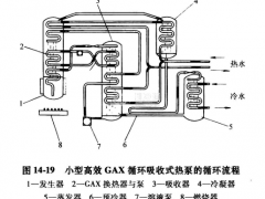图14-13是一种扩散一吸收式制冷机的循环流程图。这种制冷机的溶液循环流程是:从储液器1出来的浓氨水溶液,经过套管式溶液换热器2,被加热后进入上升管 5 。