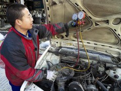 (2)真空吸入法。利用系统内的真空度将冷冻机油吸入到系统内。将冷冻机油加油管一端接低压端的检修阀,另一端插入计最好油量的量筒内。表阀的低压手动阀关闭,中间接口接真空泵,高压接口接系统的高压检修阀。接好后,起动真空泵,微微打开高压阀,并打开加油管中的开关,冷冻机油会在真空的作用下被吸入系统,直到预定的油量全部吸完为止,要注意的是加油量要多于标准的油量,因为加油管内会残留一些冷冻机油。加注完冷冻油后,则可以继续抽真空,充注制冷剂。