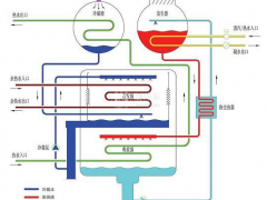⑤加设手动阀门控制的冷剂水旁通管,如果运行时突然停电,打开手动阀门,使蒸发器中的冷剂水旁通到吸收器中,溶液被稀释,防止结晶的产生。