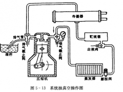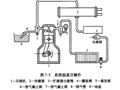小型制冷系统在完成系统吹污后,应进行压力试漏工作。方法是在压缩机高压截止阀的备用孔道上,装一只量程为0~2.5 MPa的压力表;在压缩机低压截止阀的备用孔道上,装一只量程为-0.1~1.6MPa的压力表。