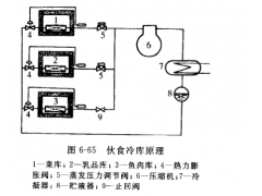 蒸发压力调节阀用在一机多库的制冷系统中,它被安装在各冷却系统的蒸发器的出口管道上,如图11-3所示,利用调节阀的入口压力来控制阀口开度,使各冷藏库在各自不同的蒸发压力下获得不同的库温,又有一个相同的制冷机吸气压力。为了防止高蒸发压力制冷剂蒸气倒流入低蒸发压力的蒸发器中一般在低蒸发器的出日处要加装止回阀。