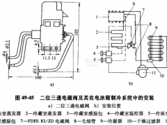 三通电磁阀也是直接启闭式电磁阀,用于制冷系统作为制冷压缩机气缸卸载装置的油路控制。其工作原理与ZCL-3型两通电磁阀相同。结构如图3-6所示。