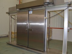 冷库门扇的尺度较大,并且易产生冰霸凝结,如过于笨重,开启将不方便。因此,门扇本身要用高强质轻的材料制作,其门碰锁、门轴、铰链等也要灵活轻便。