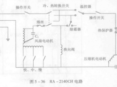 热泵型窗式空调器与单冷型窗式空调器相比,空气循环系统和箱体支撑系统没有变化,不同的是增加了一个进行制冷、制热转换的电磁四通换向阅和制热毛细管,电气控制系统亦稍有不同。