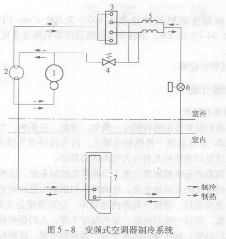 2、变频室空调器控制系统的组成及特点:变频室空调器控制系统由电脑芯片进行控制,其控制系统如图5-7所示,而制冷系统如图5-8所示。