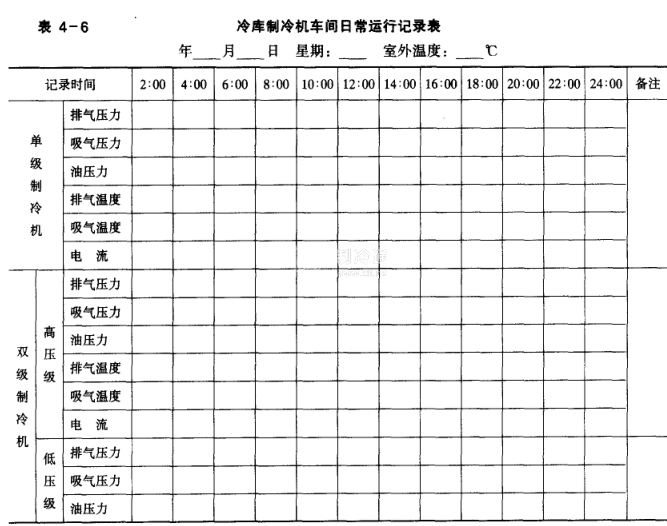 制冷系统的运行记录每月应有专人统计,对每台制冷压缩机、氨泵、冷风机等设备的运转时间,水、电、油或其他用品的消耗进行累计。