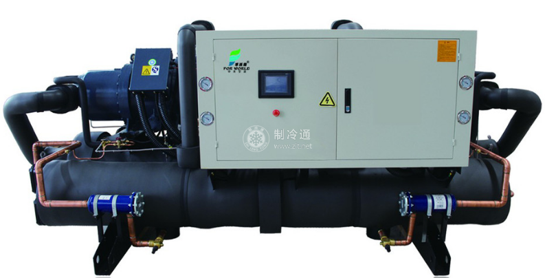 这类机组的一大特点,是其制冷与制热所得冷量和热量,可通过水传输到较远的用冷、用热设备。其冬季和夏季运行工况的转换,是靠换向阀的切换作用,改变制冷剂在制冷环路中的流通方向来实现的。